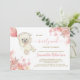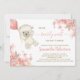 Cute Bear Pink Floral Balloon Girl Baby Shower Invitation