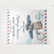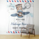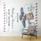 Personalise this cute baby shower postcard style welcome backdrop tapestry with your details easily and quickly. Simply click the Edit Using Design Tools button to further edit the text, wording, font style, font size, font colour and add more or remove text. Featuring a cute bear riding a dusty blue plane with an "it's a boy" postmark. Matching items available in store! (c) The Happy Cat Studio