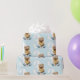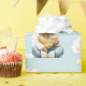 Celebrate your child's third birthday with this cute bear birthday party hat. The design features a bear holding a birthday cupcake. The background is a subtle light blue pattern. You can personalise this party hat with a name.