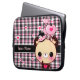 Cute bear with balloons on black and pink plaid laptop sleeve