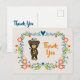 Cute Bear, Yellow Flower & Floral Wreath Thank You Postcard