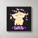 Adorable Valentine Canvas Print featuring a cute Teddy bear couple hugging each other, pink little hearts and butterflies, and the word "Love" on black background. You may change the background colour as you wish.