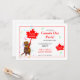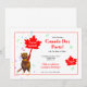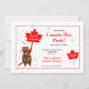 A Canada Day invitation with a cute beaver character holding a maple leaf shaped sign that says "You're Invited!"