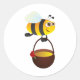 Cute Bee Carrying Honey Pot with Flower Classic Round Sticker