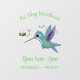 This cute design features a green and purple happy hummingbird with a bee friend. All done in happy cartoon illustration style!