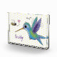 This cute design features a green and purple happy hummingbird with a bee friend. All done in happy cartoon illustration style!