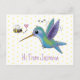 Cute bee hummingbird cartoon illustration postcard
