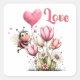 Cute Bee Love Heart Balloon Spring Flowers Square Sticker