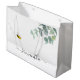 A chic white background. Decorated with watercolored eucalyptus greenery, foliage and a cute, happy smiling bee. Personalise and add a name. The name is written with a modern hand lettered style script with swashes.