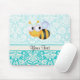 Cute Bee; Teal Damask Pattern Mouse Pad