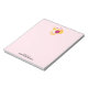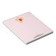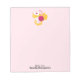 Notepad with a sweet image of a pink and white striped bumble bee. A piece of yellow honeycomb behind. A letter sealed with a heart and a group of floating hearts are also part of the design. Personalise with your name. Pink background.