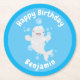 Cute beluga whale personalised cartoon birthday round paper coaster