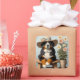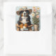 Cute Bernese Mountain Dog with Hat and Flowers Square Sticker