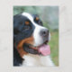 Cute Bernese Mountain dog with his pink tongue hanging out.