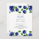 Simple and elegant Berry First Birthday party invitation postcard with watercolor blueberries. Designed and illustrated with love by Kristine Lee Designs www.kristineleedesigns.com
