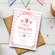 Celebrate your little one's first birthday with our darling cute berry first girl 1st Birthday Invitation! This sweet design showcases a cute strawberry wearing a coquette pink bow on a charming red and white gingham background. Perfect for your little girl's first birthday celebration. Order now and get ready to spread the sweetness with this charming and unique invitation! Matching party accessories available.