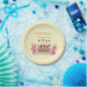 Cute Berry Sweet Pink Bunny Birthday Yellow Paper Plate