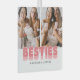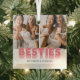Modern best friends christmas ornament featuring 2 bestie pictures for you to replace with your own, the title "besties", and your names.