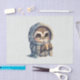 Cute Big-Eyed Owl Holding a Coffee Tissue Paper
