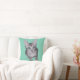 Accent your room with this throw pillow of a cute kitten with big eyes. The background can be customised to your choice of colour.