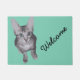 A cute pop art kitten with big eyes saying Welcome. This doormat is sure to be an attention grabber with lots of aw's, as well as, to give your guests a fuzzy warm welcome. If you prefer, you can " Customise it " to a different background colour.