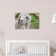 Poster featuring a close up photographic image of an extremely cute billy goat.