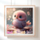 Cute Bird Baby Pink Owl Book Personalised Art Poster