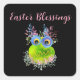 Cute Bird Easter Blessing Art Work Square Sticker. Happy Easter. Love!