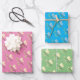 Cute bird on a branch Wrapping Paper Sheets. Personalise with your favourite colour. Cheerful gift wrap for Birthday, baby shower and more. Pink blue and green colours. Nature inspired illustration.