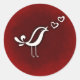 Dress up your favours, gifts, and envelopes with our cute bird singing love Valentine's day round sticker. Valentine's day Stickers are great for sealing gifts, packages and cards. Use the smaller sizes for envelope seals and gift tags the larger size for bigger gifts and gift tags.You can get larger size by clicking "more" button on the right side of this image.Valentine stickers give all your greetings a special touch.