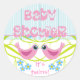 Baby Shower Envelope Seals Round Stickers. Invite your family, relatives and friends to your baby shower party and seal the envelopes with this cute round sticker featuring two lovely pink birdies on a lime branch with flowers. The words Baby Shower is written in a lovely font with hearts on blue striped background.