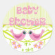 Baby Shower Envelope Seals Round Stickers. Invite your family, relatives and friends to your baby shower party and seal the envelopes with this cute round sticker featuring two lovely pink birdies on a lime branch with flowers. The words Baby Shower is written in a lovely font with hearts on lime striped background.