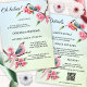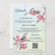 Gender neutral baby shower invitation featuring two pretty birds with bows on flower branches, in soft pastel colours. On the back are options to add a diaper raffle, book request, and registry QR code. A cute invitation for twins and customisable to welcome one baby (or more!).