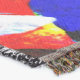 A quality printed throw has its advantages. This is a much finer weave throw than its loopier cousins, and though lighter, it is worth the investment for custom room accessorizing. The back is much prettier than the typical brown, and the fringe on the long sides very vivid, the selvage nicely done. Before photographing, I washed the throw in cold water, delicate, with a thicker woven throw the same size. On tumble dry low, this throw was dry in half the time as the other. This is a very practical quality if you use throws for furniture covers or to wrap up in frequently. The sleekness of the fabric makes it a great layer for accenting or protecting without the feeling of sitting on too much stuff. Perfect for napping or when you feel a light chill coming on. The color printing is beautiful and on this fabric, matched the design and color of my Photoshop image. This is an advantage for blending room fabrics and colors. The fringe on the short sides prints the colors from the design image and therefore varies from the side fringe. I streaked a white fractal line through the plaid pattern to give the illusion of weaving. This printed as crisp as an illusory thread, and put some white in the short side fringe, showing another advantage of print vs loomed- for artistic purposes, line lines, detail, and color integrity can be planned and preserved. My loomed throws have color limitations and more of a needlepoint texture. Print throws reproduce an exact image. The throw felt a little stiff straight out of the package, but this went away in the first delicate wash. Of course I searched the wash water for ink or bleeding and there was none.