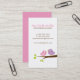 Cute girly illustrated birds on a tree branch. Customise with your personal business contact information for an adorable and unique business card design! Back has coordinating polka dot pattern or you can use the space to add more text if needed. Click the Customise It button to change fonts and colours and further personalise the design.