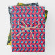 Bluebirds on red, yellow birds in a green forest, and blue and white birds perched on branches makes a cute set of wrapping paper with a bird theme. Great for any occasion!