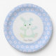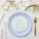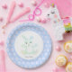 Cute Birthday Bunny & Flowers on Light Blue Paper Plate