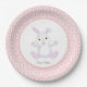 Cute Birthday Bunny & Flowers on Light Pink Paper Plate