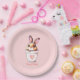 Cute birthday bunny plant pot with heart on light rose gold Paper Plates. Ideal for Easter, holidays, Birthday and more. Bunnies symbolise abundance, longevity and good fortune.