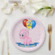Cute Birthday Girl Pink Baby Triceratops Dino Paper Plate