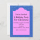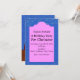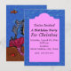 This party invitation has a cute mermaid with a bright pink tail holding the head of her silver and blue seahorse friend with a fish swimming overhead and two orange starfish in the sand below on an ocean blue background. Customise your information in the pink frame with the templates.