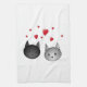 Cute Black and Grey Cats, with Hearts. Tea Towel