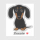 Cute Cartoon Wiener Dog Sticker. Stick this adorable Doxie vinyl decal to your laptop, phone, notebook, water bottle, guitar case or even your car. These durable vinyl Dachsie stickers are waterproof and fade proof. A cool design for dog lovers, dog moms, dog dads, particularly anyone who loves a short haired black and tan standard or miniature mini Dachshund puppy. Visit Jenn's Doodle World for even more dog breed stickers and gifts.