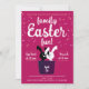 Send out a cheerful and cute invitation for your Easter party with this cartoonish design featuring two adorable black and white bunnies against a vibrant magenta background. Colourful confetti-like dots add a festive touch, creating the perfect playful atmosphere for your event. The minimalist style keeps it fun yet elegant, while allowing your personalised message to shine. You can easily customise the text to suit your Easter party theme, making it uniquely yours. Celebrate the season with this charming invitation that will surely delight your guests!