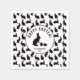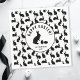 A minimalist Easter design in a modern black and white color scheme featuring Destei's repeating bunny silhouettes that create a bold, graphic background. A white circle with a black border at the center contains a bunny motif paired with two Easter egg silhouettes and two personalizable text areas, perfect for a Happy Easter greeting and a family name.