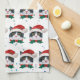 Cute Black and White Cat With Santa Hat Christmas Tea Towel