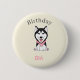 Cute black and white husky dog with pink bandanna on cream colour background. Just add a name on this is a cute design.