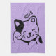 Cute Black and White Kitty Cat Waving Hello Tea Towel