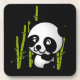What a cute and adorable illustration of a black and white panda bear sitting amongst the green bamboo stalks in a little grove, looking happy, friendly and loveable. Black background really makes this little panda pop!