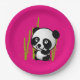 Cute black and white panda bear in a bamboo grove. paper plate